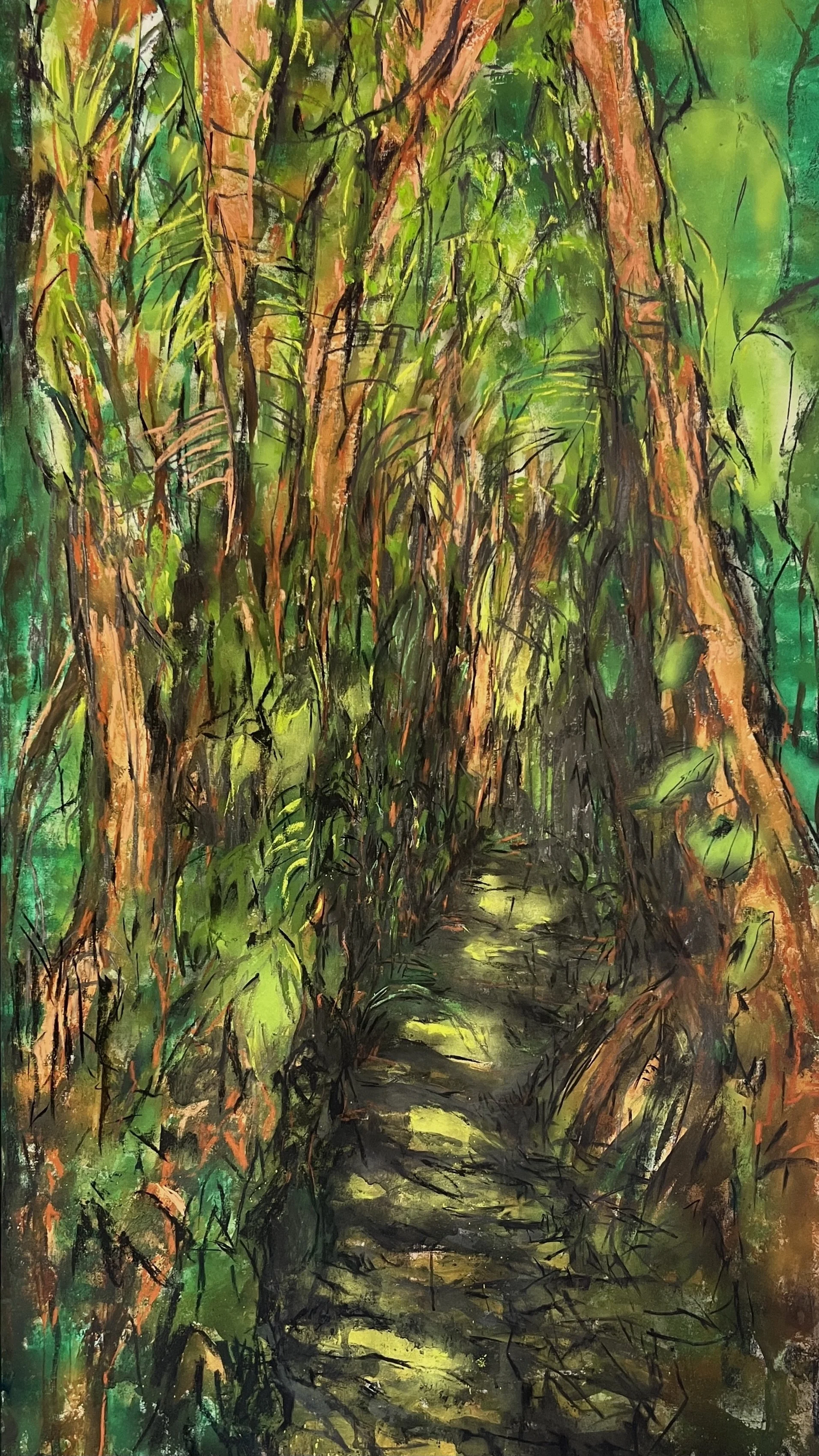 I spent a few days in the jungle making sketches and taking photographs before undertaking the large mixed media drawings that are part of the SELVA installation